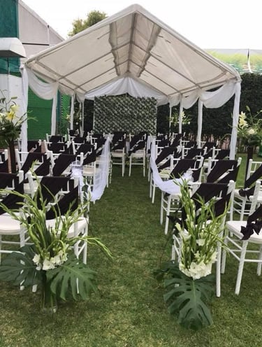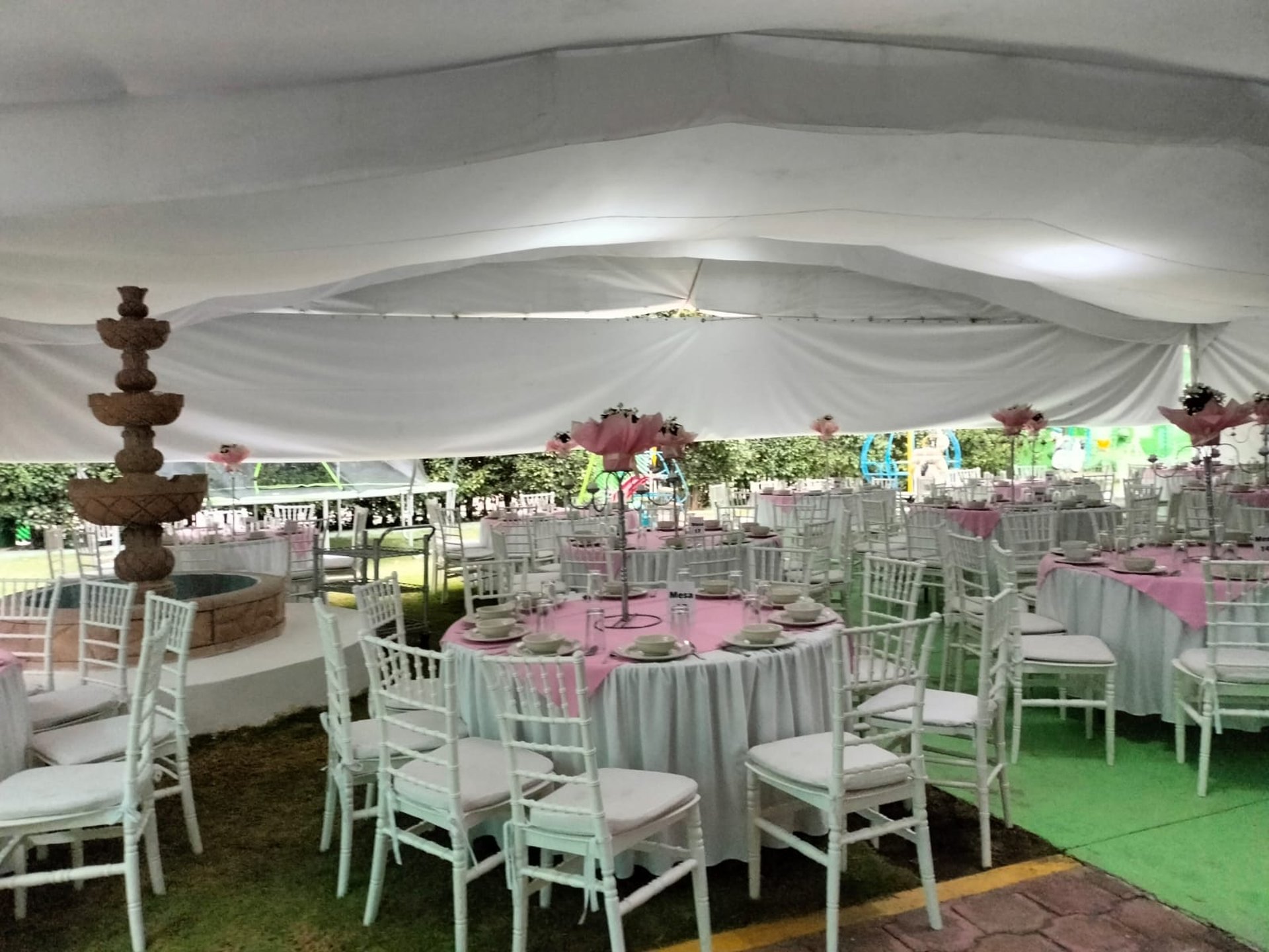 Disfruta de un ambiente al aire libre con todas las comodidades. Perfecto para bodas, XV años, bautizos y mas.